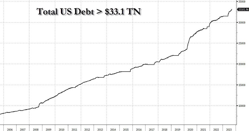 Total US Debt surpasses $33.1 trillion for the first time. That's $100 billion in 5 business days