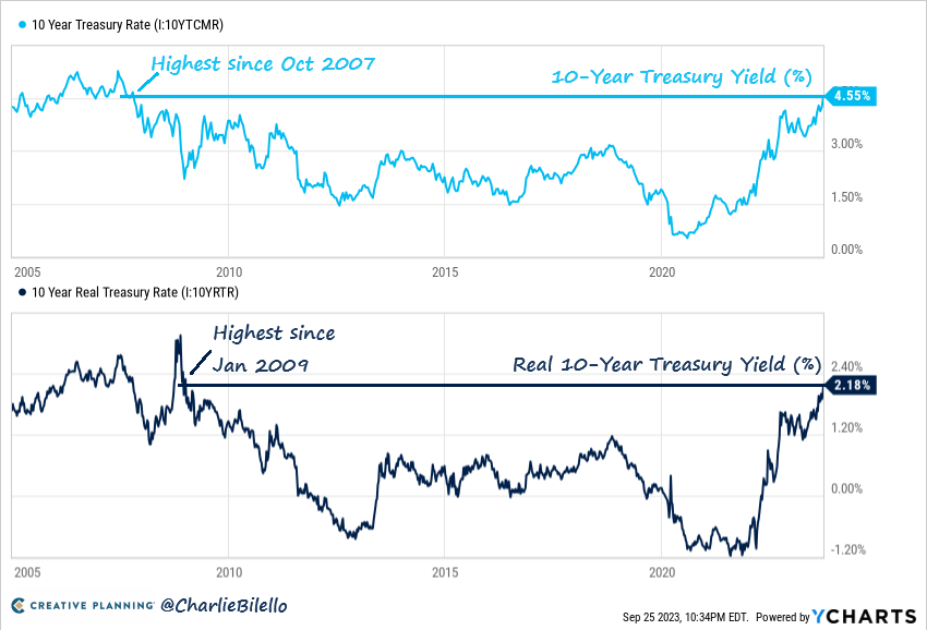 10-Year Treasury Yield moved up to 4.55% today, highest since Oct 2007