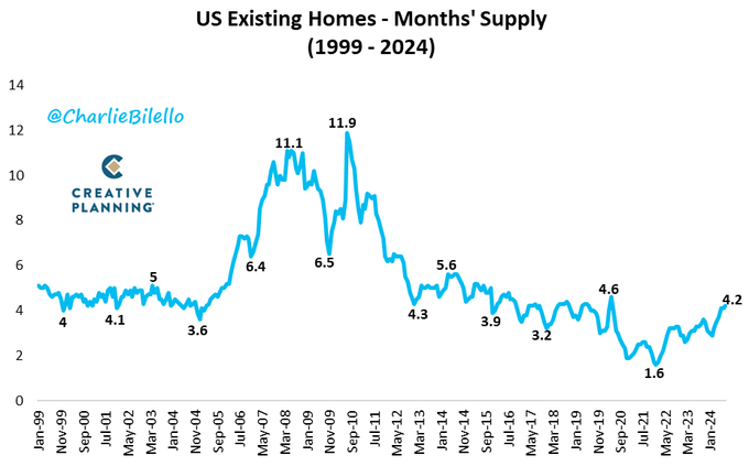The months’ supply of US Existing Homes has moved up to 4.2,