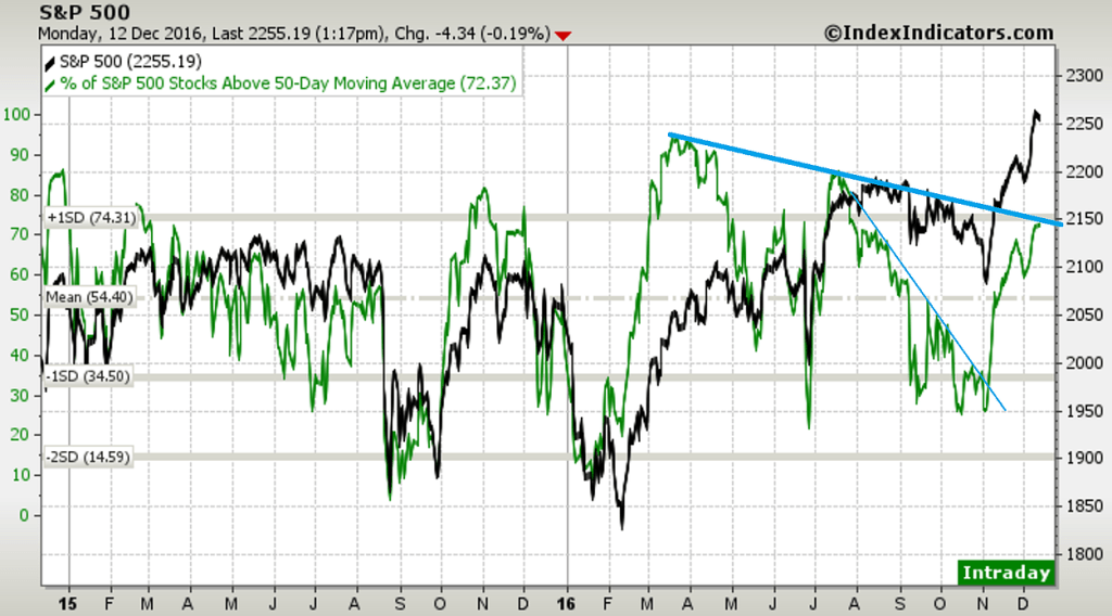 S&P 500: Massive divergence in Price action and % of stock above their 50 SMA