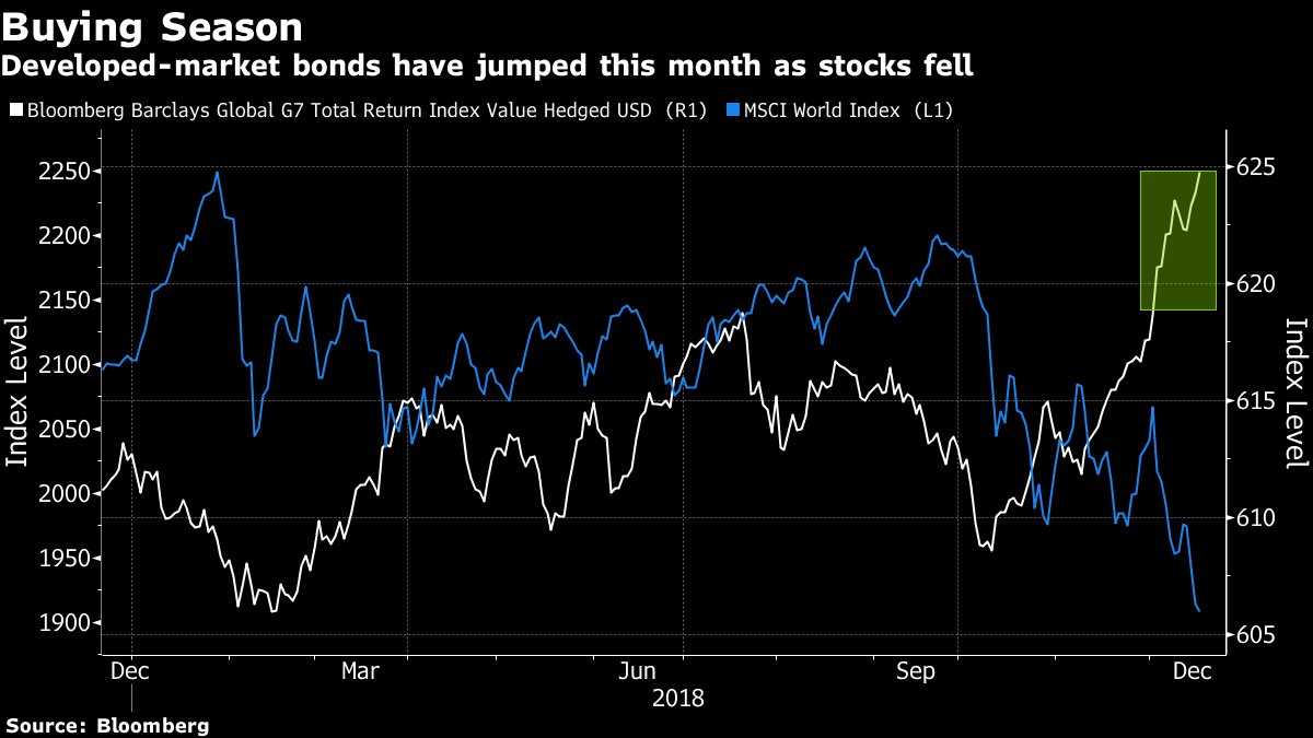 Developed-market bonds head for their best December in 7 years in what appears a vote of no confidence in the global economy for 2019
