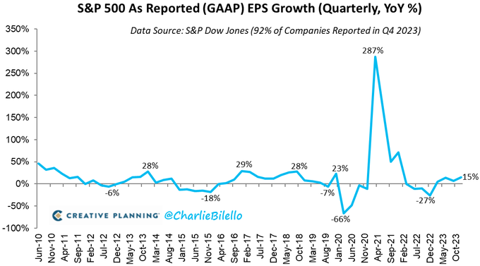 With 92% of companies reported, S&P 500 Q4 GAAP earnings per