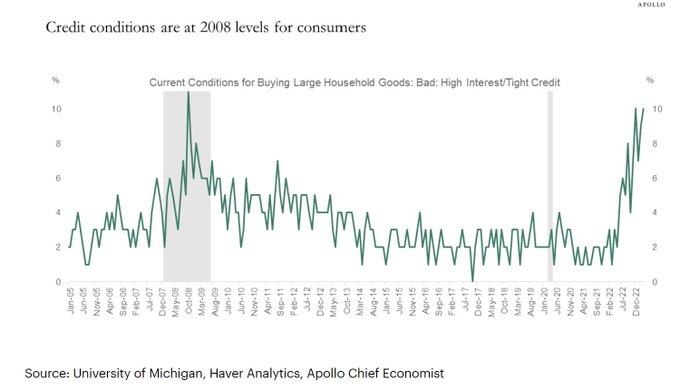Even before the SVB debacle, credit conditions were reportedly tight from the consumer's perspective...