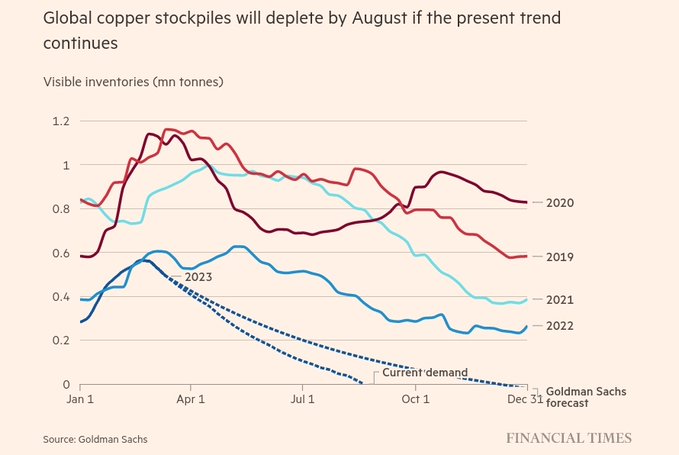 Global copper stockpiles will deplete by August if the present trend continues