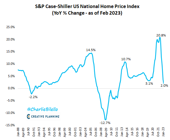 US home prices rose 2% over the last year (case shiller data as of February), the lowest growth rate since 2012.