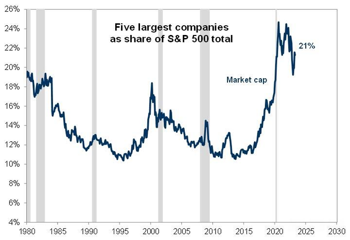 Just five stocks make up 21% of S&P 500 market capitalization