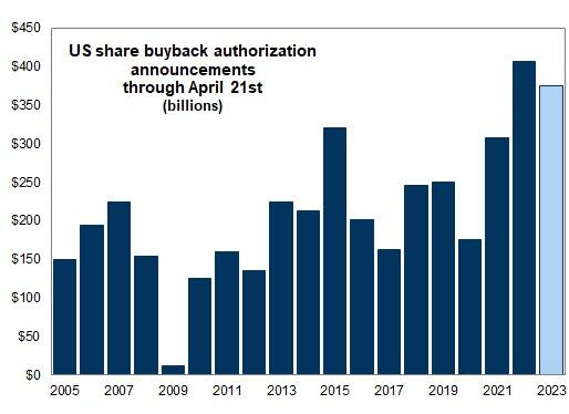 Share buybacks remain quite popular, though slightly lower than what we saw last year up to April 21st