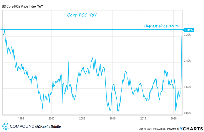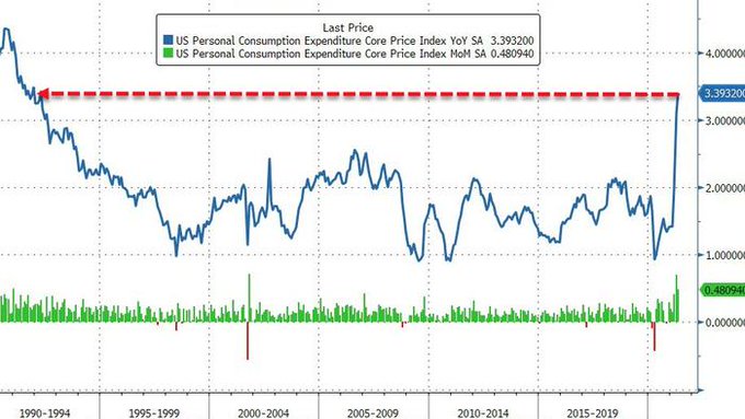 US Core PCE inflation rises to 3.4%, its highest level since 1992