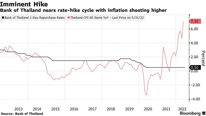 Thailand’s central bank signals an imminent rate increase, saying timely monetary policy adjustment in line with changing economic and price trends will help steer broader inflation expectations