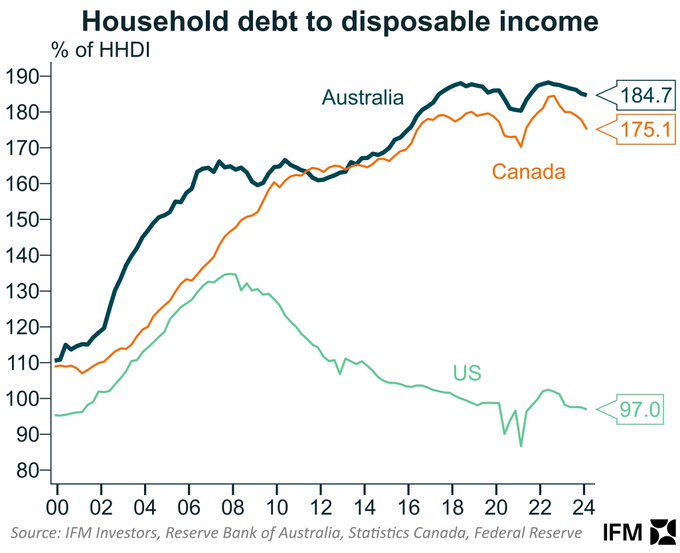 WTF is going on in Canada and Australia? Real estate debt bubble in the US in 2007 looks almost cute in this chart