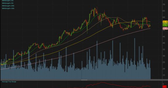 Nike is down 3% after earnings and approaching its 200-day moving average