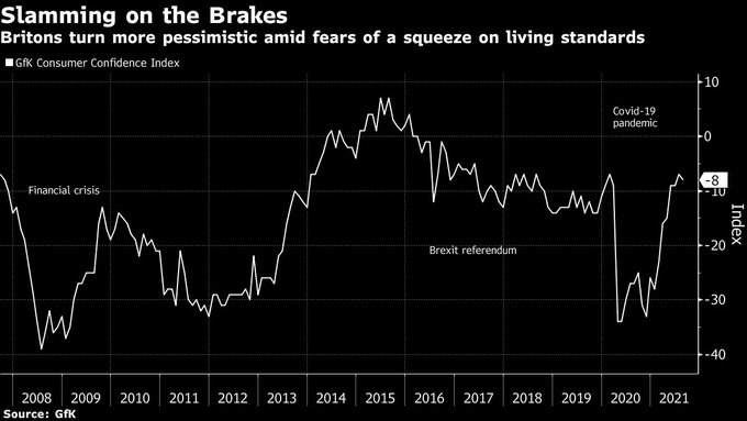 U.K. consumer confidence fell at its sharpest pace since