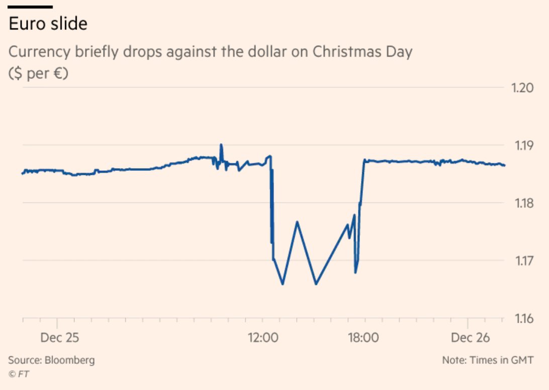 euro's drop of as much as 3 per cent in minutes on Christmas
