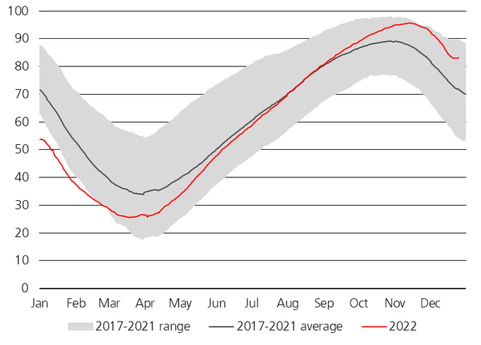 EU natural gas inventories in % of full - EU at 83.10%,