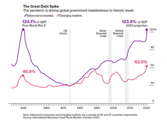 The Covid-19 pandemic has added $19.5 trillion to global debt