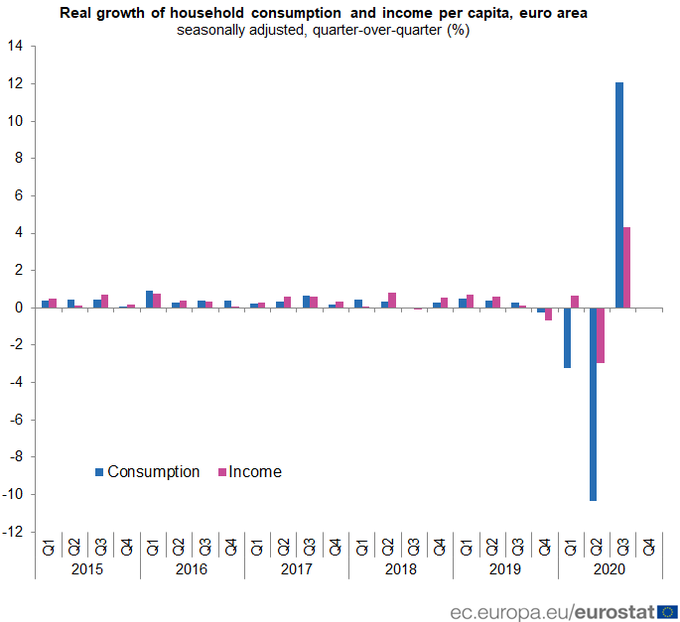 Euro area household real consumption per capita +12.1% in Q3 2020