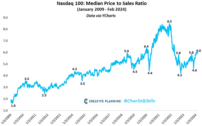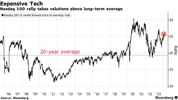 The NASDAQ 100's valuation is expensive here, per Bloomberg |