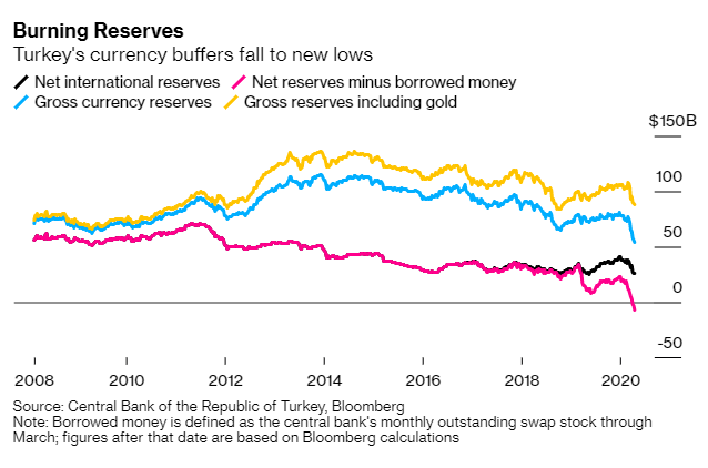 Turkey’s defense of the lira sends central bank net international reserves to the lowest level since last May
