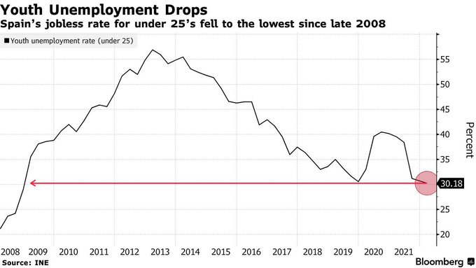The unemployment rate in Spain for people under 25 falls to