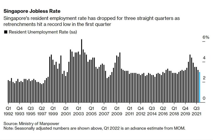 Layoffs in Singapore hit a record low during the first three