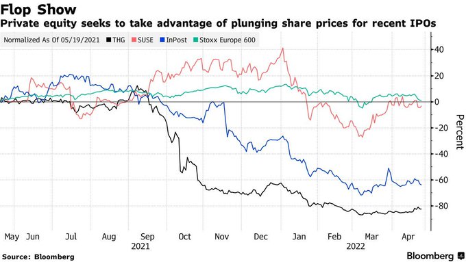 The steep drop in share prices of recently-listed European
