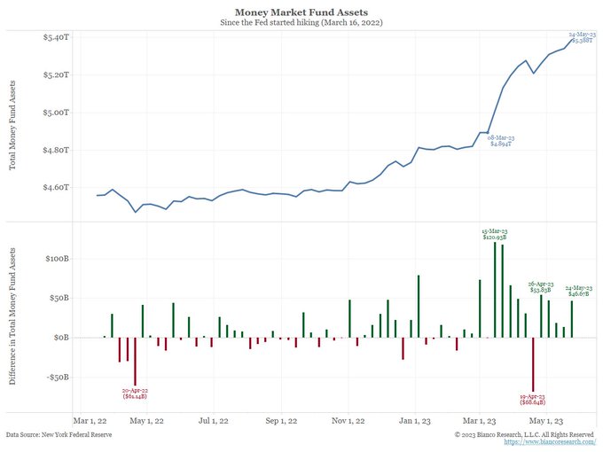 The "Bank Walk" continues unabated. Another $47B flowed into money market mutual funds this past week
