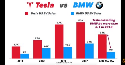 Should Tesla TSLA be scared of other electric vehicles in the market? Someone just posted this chart of Tesla vs. BMW