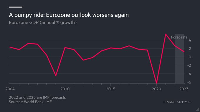 The eurozone is forecast to eke out growth fractionally