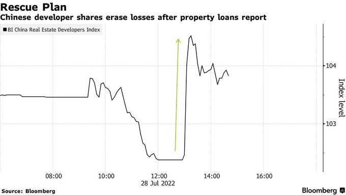 Chinese developers jumped after a report said banks may