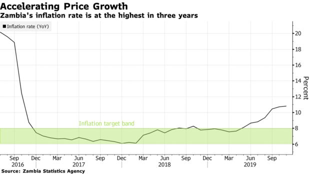Zambian inflation reaches a three-year high as a drought pushes up food prices and its currency plunges