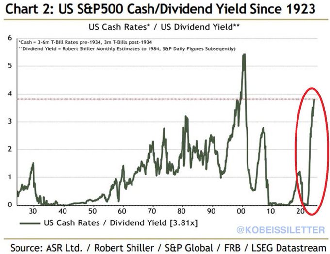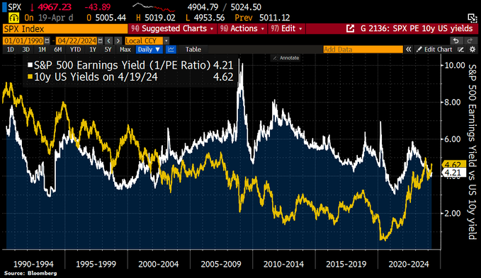 while S&P 500 earnings yield (1/PE ratio) trades at 4.21%. |
