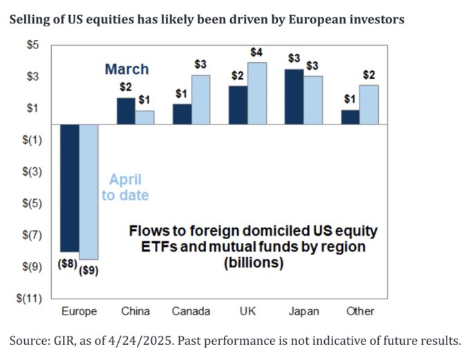 This is interesting. GS estimates that European investors have driven foreign net selling of US equities.