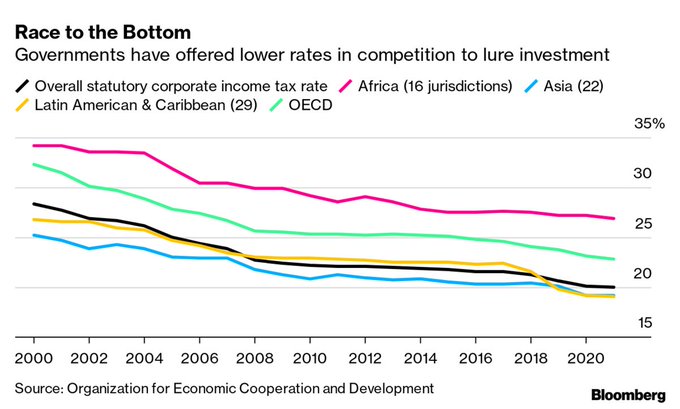 Global companies are benefiting from a prolonged decline in tax rates and continue to shift profits between jurisdictions to further cut their bills