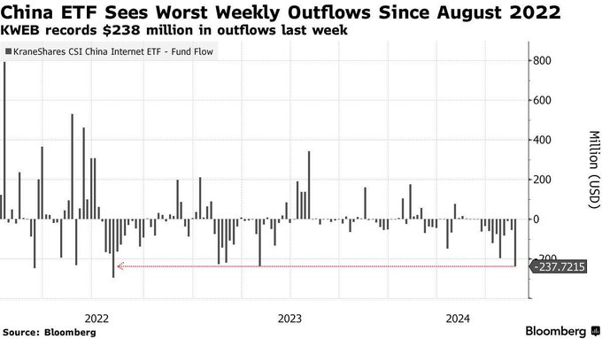 China Internet ETF KWEB sees a weekly outflow of $238 million, the largest outflow in 2 years