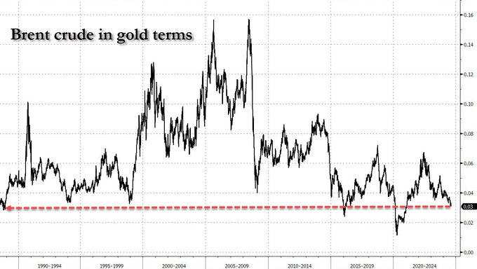 Oil in gold terms at 40 year low