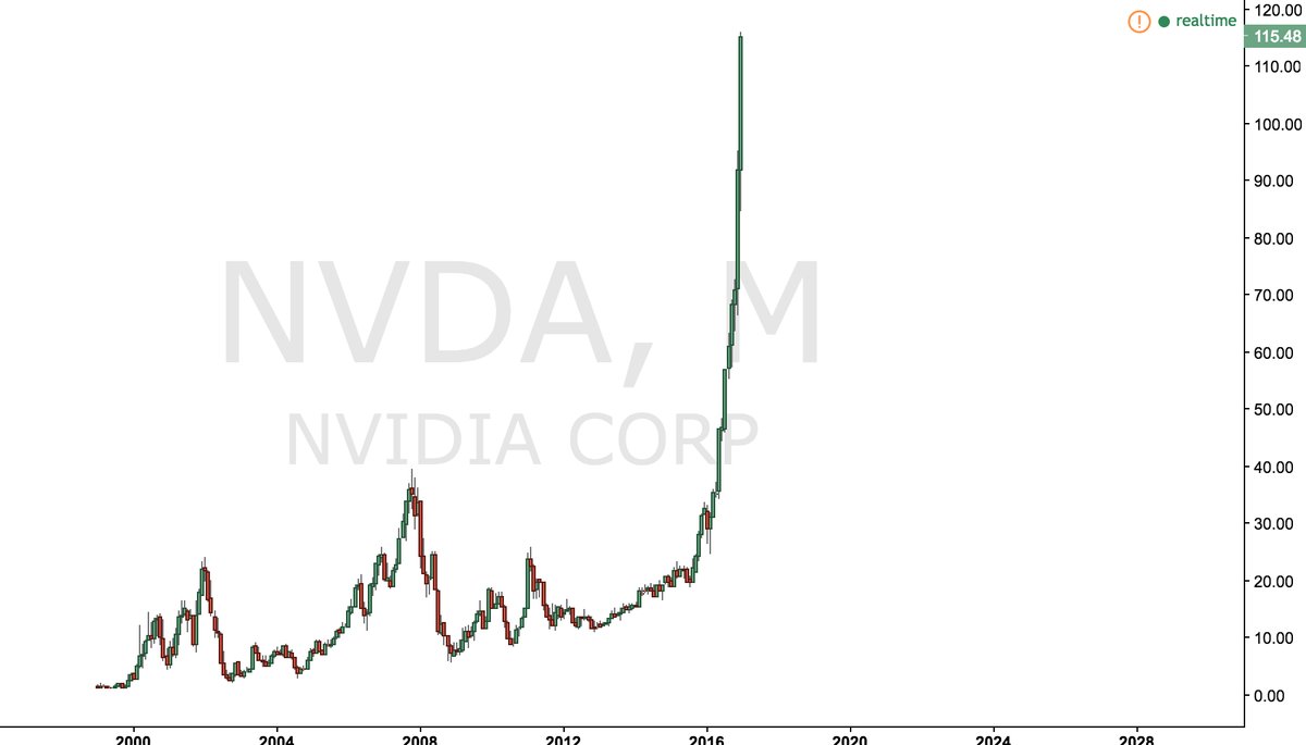 Is there a more jaw-dropping chart than this? You're looking at NVDA (NVIDIA). It's up over 250% this year