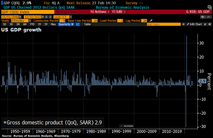 US economy expanded at 2.9% annual pace from Oct-Dec, ending