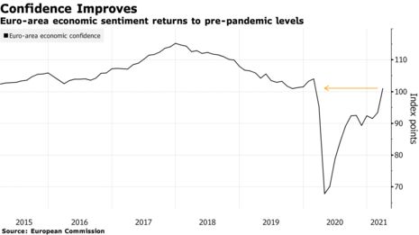 Euro-area confidence rises to the strongest level since the
