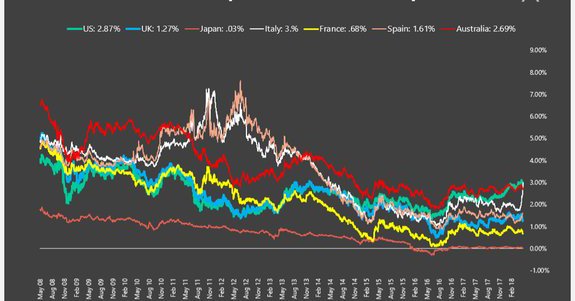 Of all the major countries, Italy's 10-year yield is now the HIGHEST