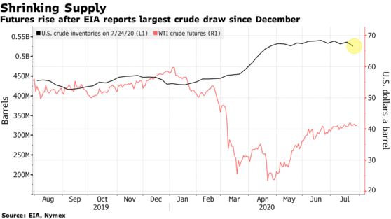 Oil gets buoyed by shrinking American stockpiles and a