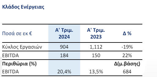 ενεργειακό τομέα. Το EBITDA το υπολογίζει σε 900 εκατ. ευρώ