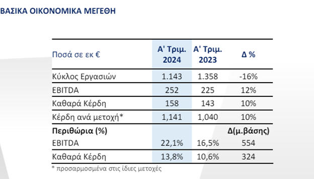 χρήσεως του πρώτου τριμήνου του 2024. Ο κύκλος εργασιών