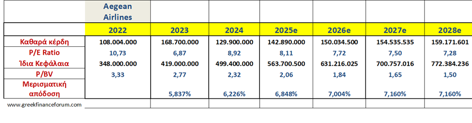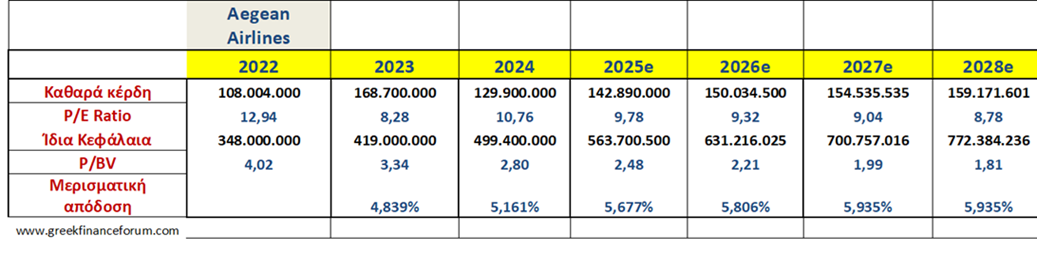 χρήσεις 2027 – 2028 διαμορφώνεται στο 7,3 με 7,5χ. Επίσης,