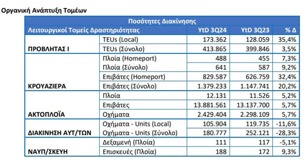 ιδιαίτερα ξεχώρισαν οι τομείς Κρουαζιέρας, Σταθμού