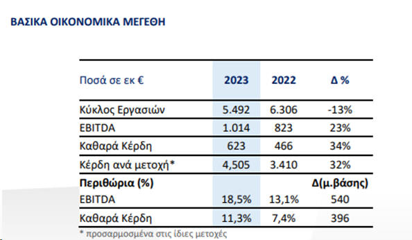 επίπεδο EBITDA κατά 38% σε σχέση με το 2022 και σε συνδυασμό