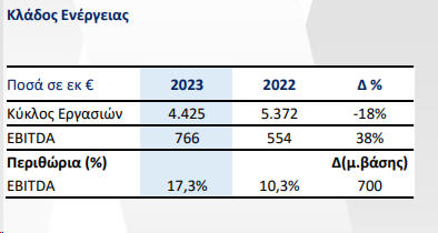 επιδόσεις στον ενεργειακό τομέα. Το EBITDA το υπολογίζει σε