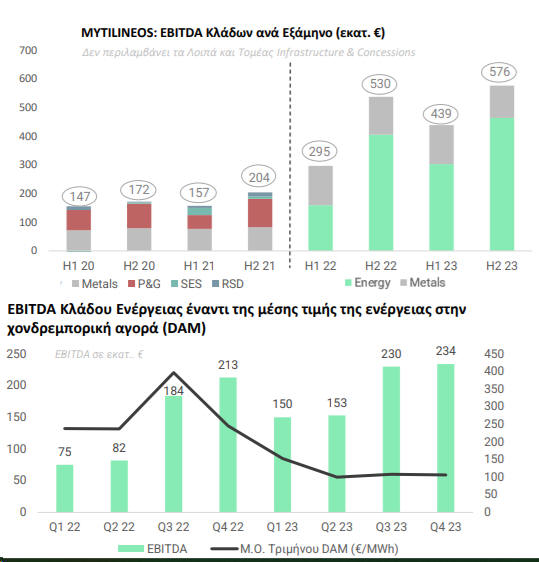 της Μυτιληναίος. Στον κλάδο μετάλλων τα κέρδη του 2023 ήταν