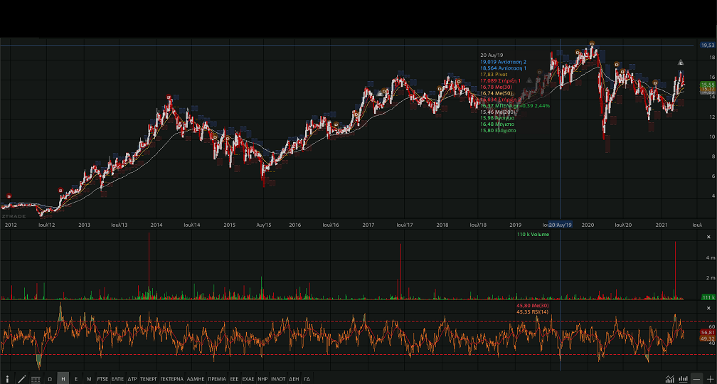 από τα ιστορικά υψηλό της μετοχής, περίπου 19,5 ευρώ), 25%