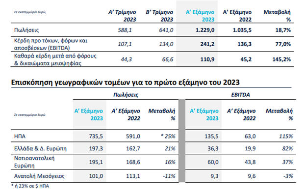 πωλήσεις για το πρώτο εξάμηνο του 2023 να ξεπερνούν τα