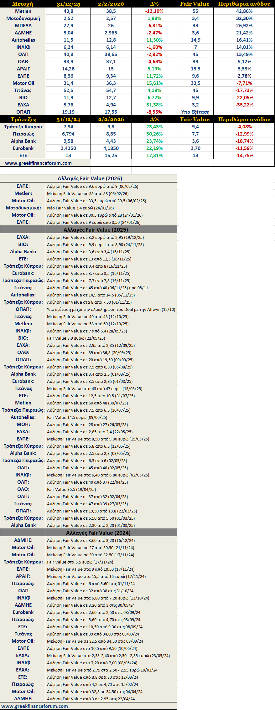 Τα Fair Value, οι αποδόσεις του 2026 και τα περιθώρια ανόδου upd